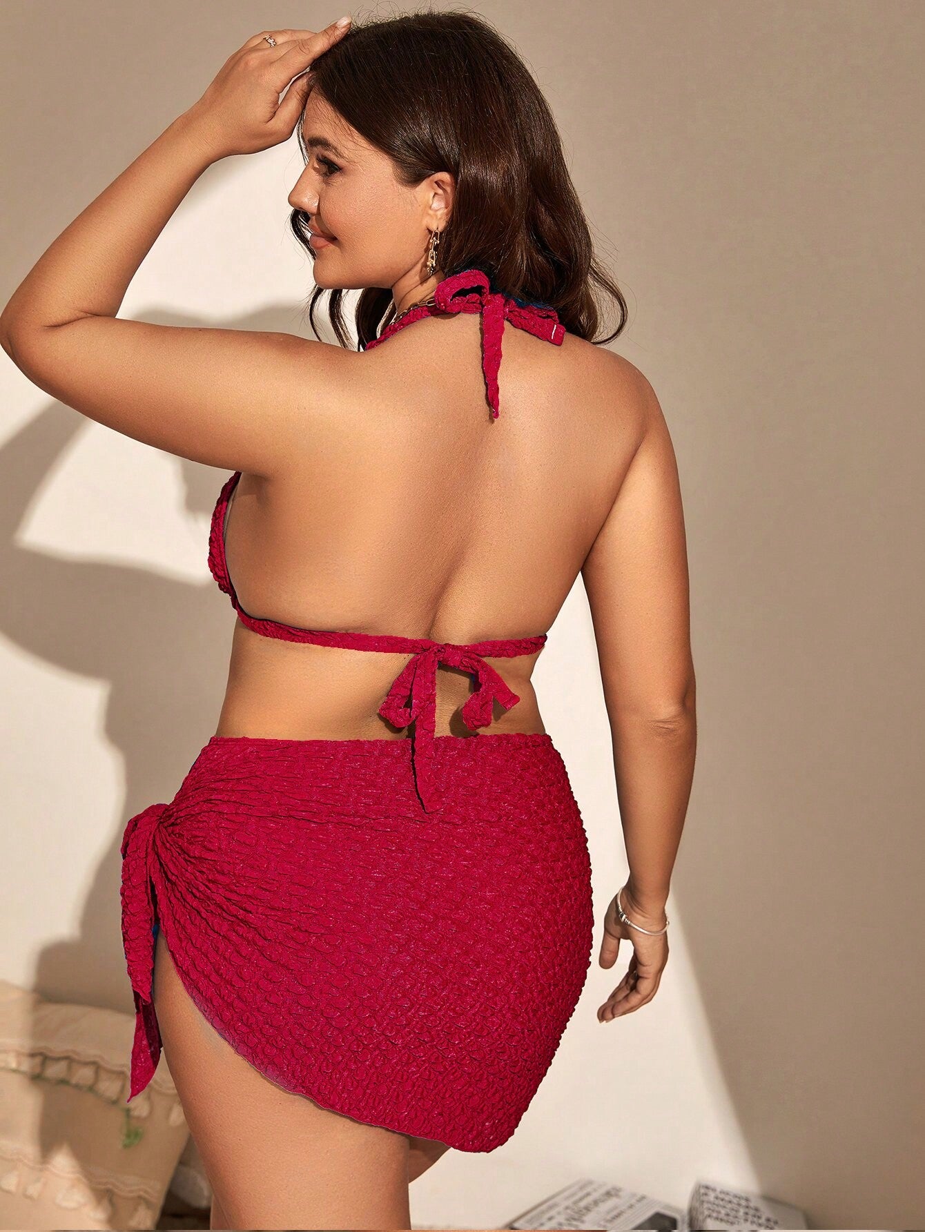 Deixe sua beleza brilhar enquanto você se prepara para dias de sol e diversão na praia com este conjunto deslumbrante que combina estilo e praticidade. Este não é apenas um biquíni comum, é um conjunto completo que vai transformar seus momentos à beira-mar em uma experiência cheia de estilo. A saia de praia adiciona um toque de glamour e versatilidade ao seu visual, permitindo que você vá da areia ao calçadão com facilidade e charme.