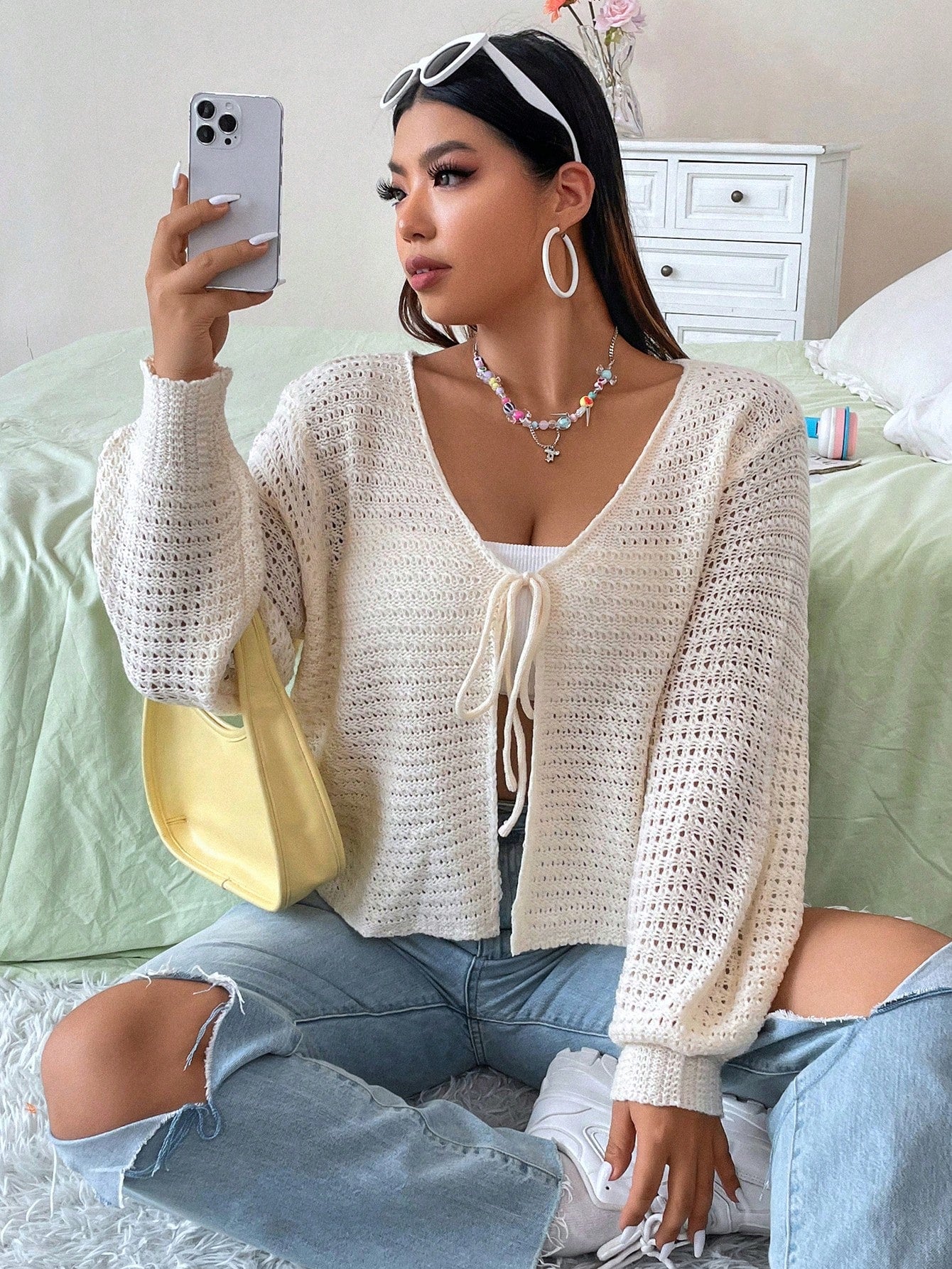 Não perca a oportunidade de destacar seu estilo com o Cardigan Meia Estação Fecho com Laço.