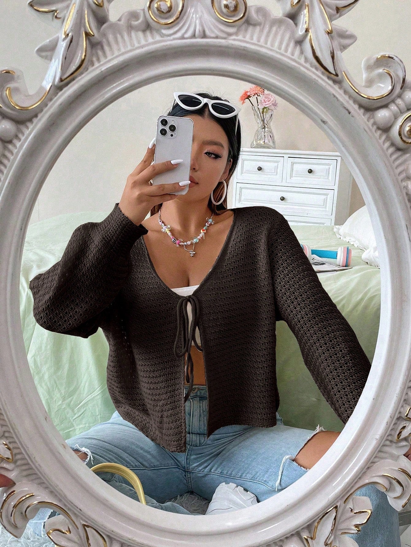 Seu decote V pequeno e manga comprida com ombros caídos garantem conforto e estilo. Com um comprimento curto, este cardigan é perfeito para complementar diversos looks, seja para um passeio casual durante a primavera ou para um encontro descontraído no outono. Feito de tecido de malha, proporciona um ajuste regular e uma sensação agradável ao toque.