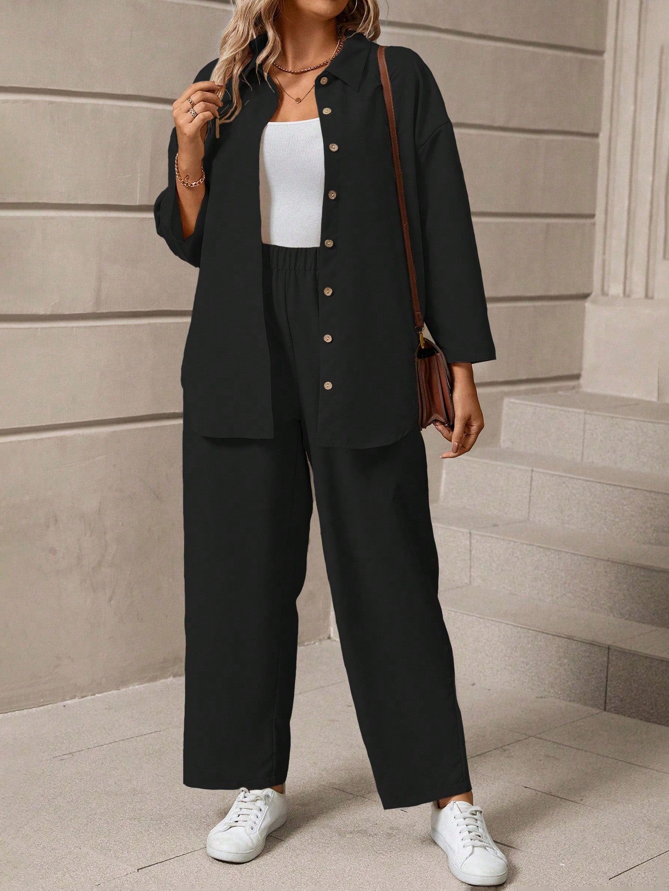 Além de seu design elegante, o Conjunto Casual de Camisa de Manga proporciona um caimento perfeito ao corpo. Feito com tecido de alta qualidade, garante durabilidade e conforto ao longo do dia, permitindo que você se movimente com liberdade e estilo. Prepare-se para se destacar em qualquer ambiente com o Conjunto Casual de Camisa de Manga, uma opção que combina praticidade, conforto e estilo em uma só peça, elevando o seu visual a um patamar de elegância e sofisticação.