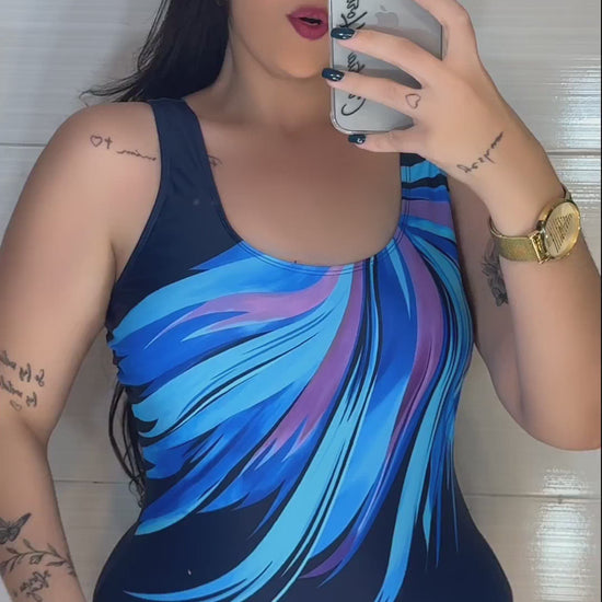 O Maiô de Alças Grossas Plus é perfeito para quem busca estilo e conforto. Com alças grossas que proporcionam sustentação, ele oferece um ajuste seguro e confortável, enquanto o tecido de malha de alta elasticidade se adapta ao seu corpo de forma suave e flexível. O design sem mangas e a linha da cintura natural criam uma silhueta elegante e atemporal.